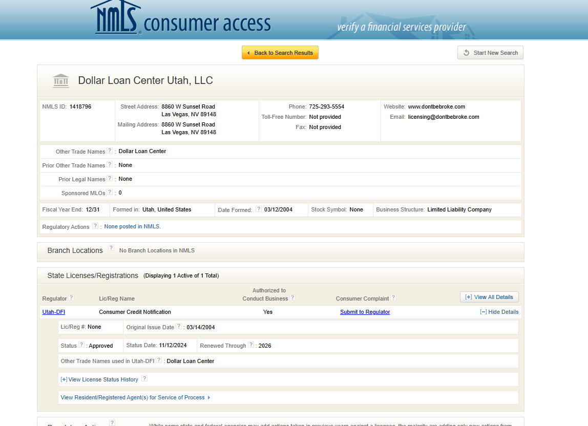 - Nevada State Installment Loan License